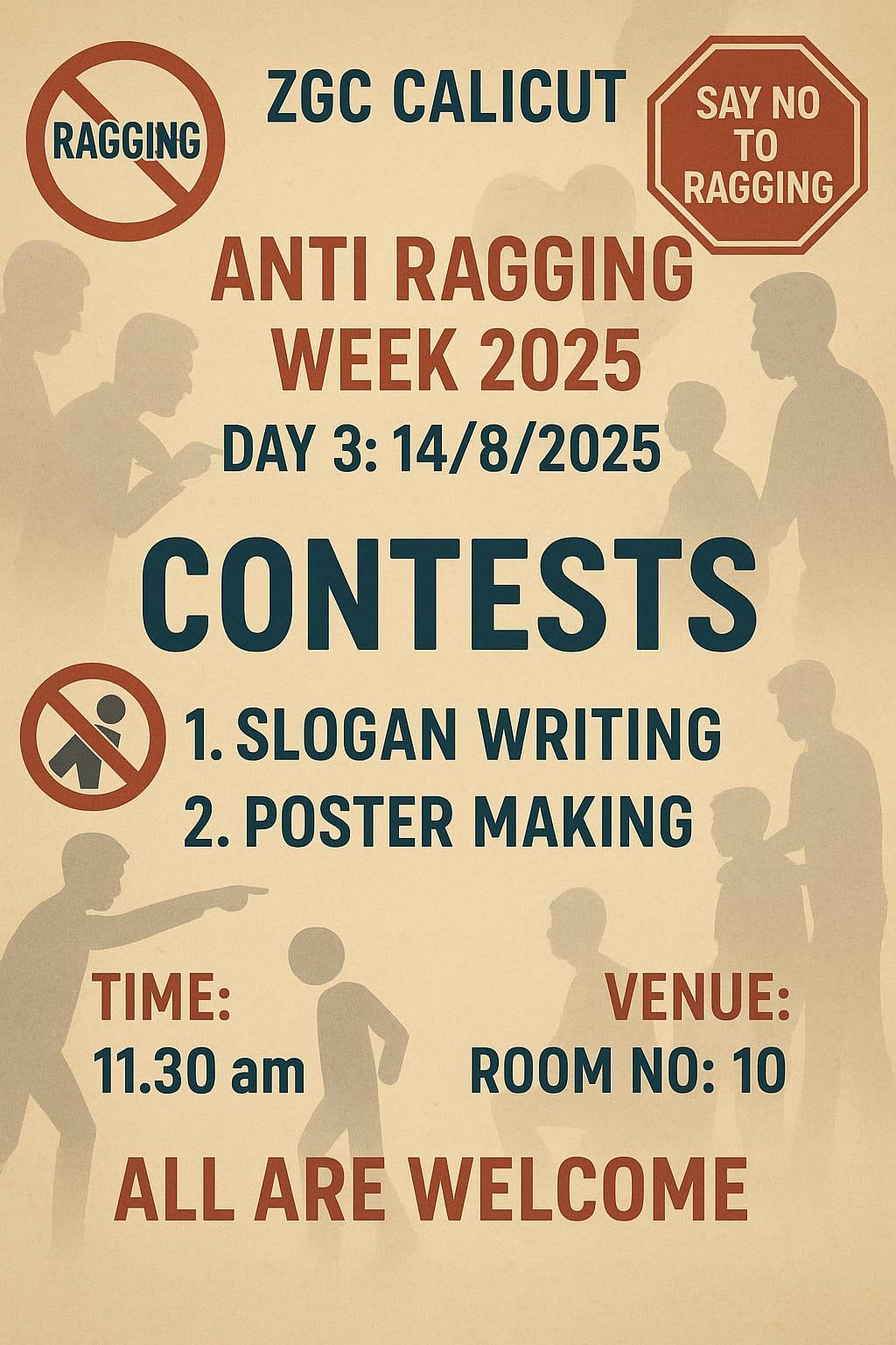 The ZGC Anti-Ragging Cell, in association with the NSS unit and Students' Union, inaugurated Anti-Ragging Week with a vibrant ceremony on campus. Hon. Principal Dr. B. Rajani delivered the inaugural address, emphasizing ...